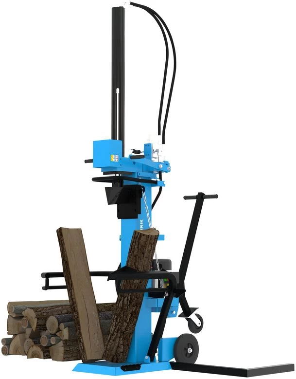 | • | Beilleszthető szállítási vonórúd lengőkerékkel A WOOD SPLITTER GHS 1000/10TE-A a legújabb minőségi és biztonsági előírásoknak megfelelően lett kifejlesztve. A hosszú rönkhasító ideális a méteres rönkök hasításához hazai terepen. A nagy teljesítményű, 3,7 kW-os villanymotor egy rendkívül hatékony hidraulikaszivattyút és egy pontosan beosztott vezérlőszelepet táplál, amely lehetővé teszi a kezelő számára, hogy 2 adagolási sebességfokozat közül válasszon. A hidraulikus mechanikus rönkemelő még a nehéz rönköket is könnyedén a helyükre hozza, és biztosítja a hátbarát és kényelmes hasítást. Az emelés során egy támasztókar gondoskodik a biztonságos állásról. A hasítóanyag-rögzítő eszközzel a hasítóanyagot a hasítási folyamat előtt lehet rögzíteni, idegesítő tartás nélkül. A hosszú hasítókés részben edzett speciális acélból készül a hosszú élettartam érdekében. A hasító ék automatikus visszaállítása a beépített biztonsági elzárással optimális védelmet nyújt, és hatékony és fáradtságmentes hasítást biztosít. A biztonságos és hatékony munkavégzéshez további intézkedéseket jelent a kétkezes biztonsági működtetés, a be-/kikapcsoló és a kétoldali hasítóanyag-felfogó. Műszaki adatok