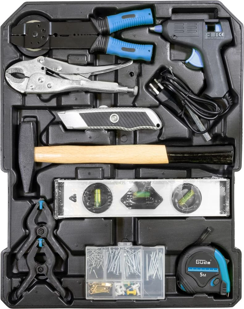 | • | Vízmérték, szigetelőszalag, kábelkötegelő, div. Szögek és csavarok Praktikus mobil szerszámkocsi meggyőző felszereltséggel: 500 alkatrész a nagy csavarhúzó választéktól kezdve a racsnis és dugókulcsos csavarhúzókon, különböző fogókon és nyitott végű racsnis kulcsokon át a racsnis funkcióval ellátott bitcsavarhúzóig és a hozzá tartozó bitválasztékig. A vízmérték, mérőszalag és társai természetesen nem hiányoznak. A csavarhúzó választék 9 klasszikus csavarhúzót, 2 rövid csavarhúzót, 3 szigetelt csavarhúzót, egy villanyszerelői csavarhúzót és 6 precíziós csavarhúzót tartalmaz. A két racsniához (1/2 és 1/4) hosszú és rövid foglalatok, valamint T-csúszós fogantyúk és különböző hosszabbítók széles választéka áll rendelkezésre. Természetesen két 16 és 21 mm-es gyújtógyertya dugaszolóaljzat is része ennek a jól felszerelt szerszámos kocsinak. Műszaki adatok