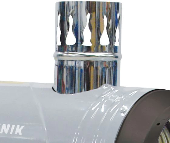 •120 mm-es kéménycsatlakozóval a kipufogógázok kültérre történő elvezetéséhez (a kályhacső nem tartozik a szállítási terjedelembe)•könnyen szállítható a nagy görgőknek és a fogantyúnak köszönhetően